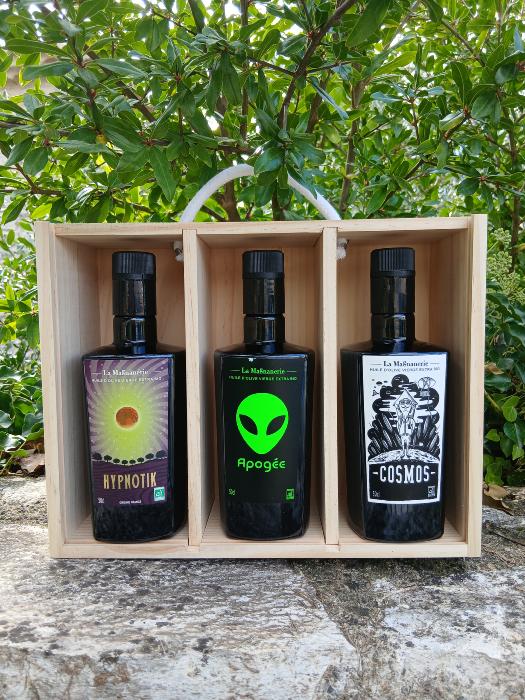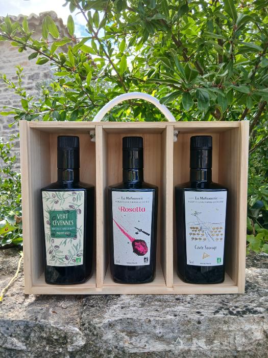 À la Magnanerie, nous produisons des huiles d'olive d'exception, régulièrement primées au concours mondial Flos Olei et reconnues par les plus grands chefs. Nous vous proposons de faire découvrir ce trésor du terroir à travers nos coffrets cadeaux sur-mesure.